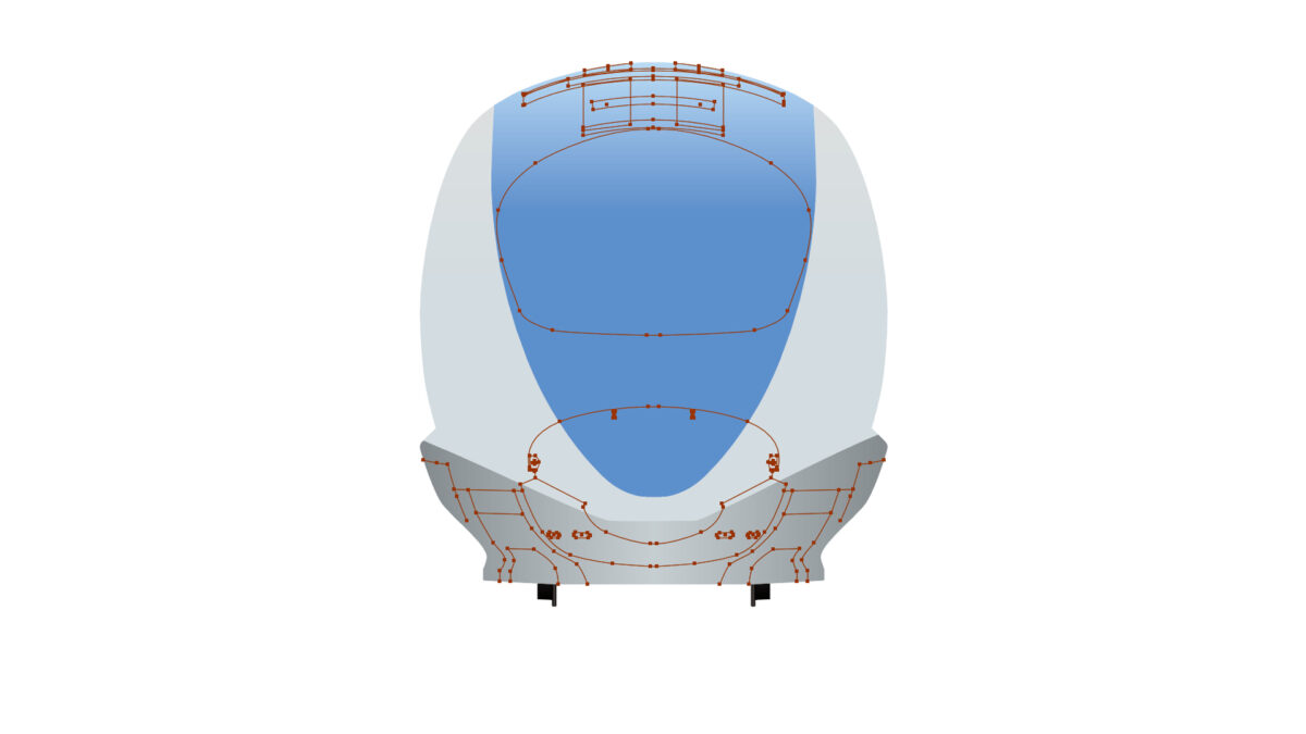 全体の輪郭を決めます。曲線は手で微調整してベースの面を作成します。