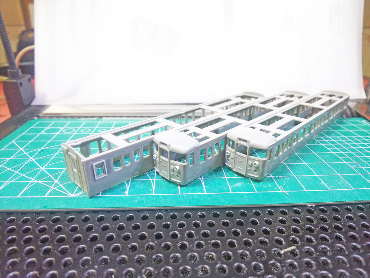 実車は2001年に引退済みなので製作資料も限られ一部異なる部分もありますが、約20年ほど前から製作予定だった車両がようやく完成してホッとしているところです。マイクロエースの113・121系やKATOの8000系など配置して四国運転会を楽しみたいと思います。一方でグリーンマックスの113系キットはまだ少し余っているんですよね。各メーカーから完成品も発売される中、どのように活用するか・・・悩んでいるところです。
