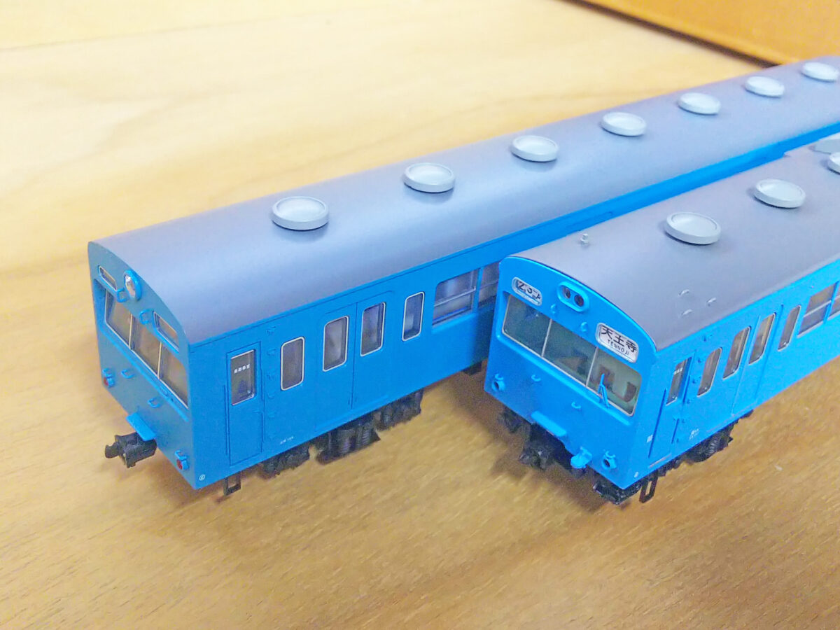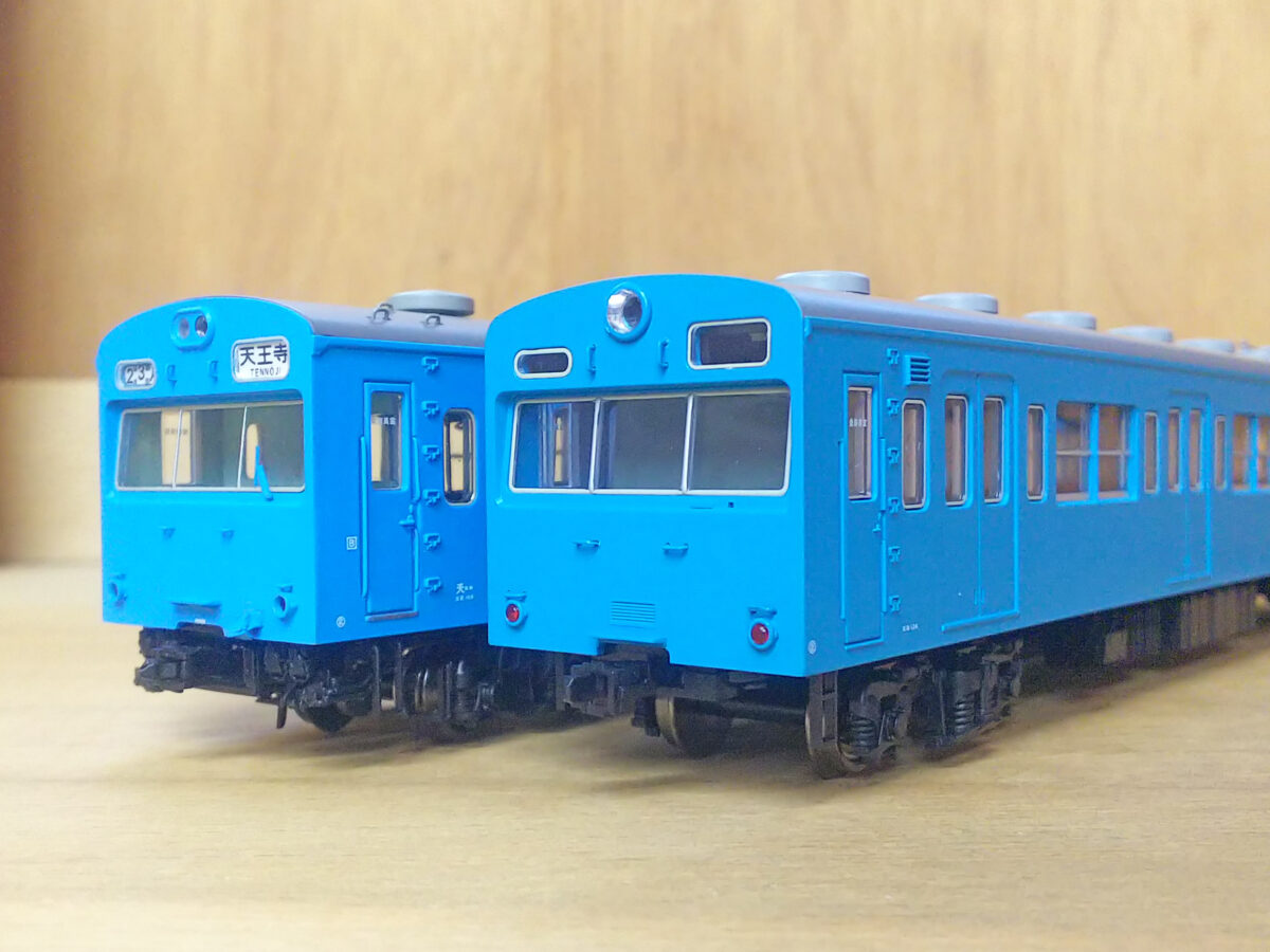 今回はTOMIXの223系2000番台以来、16番は約8年振りにトラムウェイの103系スカイブルーを地元阪和線のイメージで両端クハ編成とクモハ編成を購入しました。