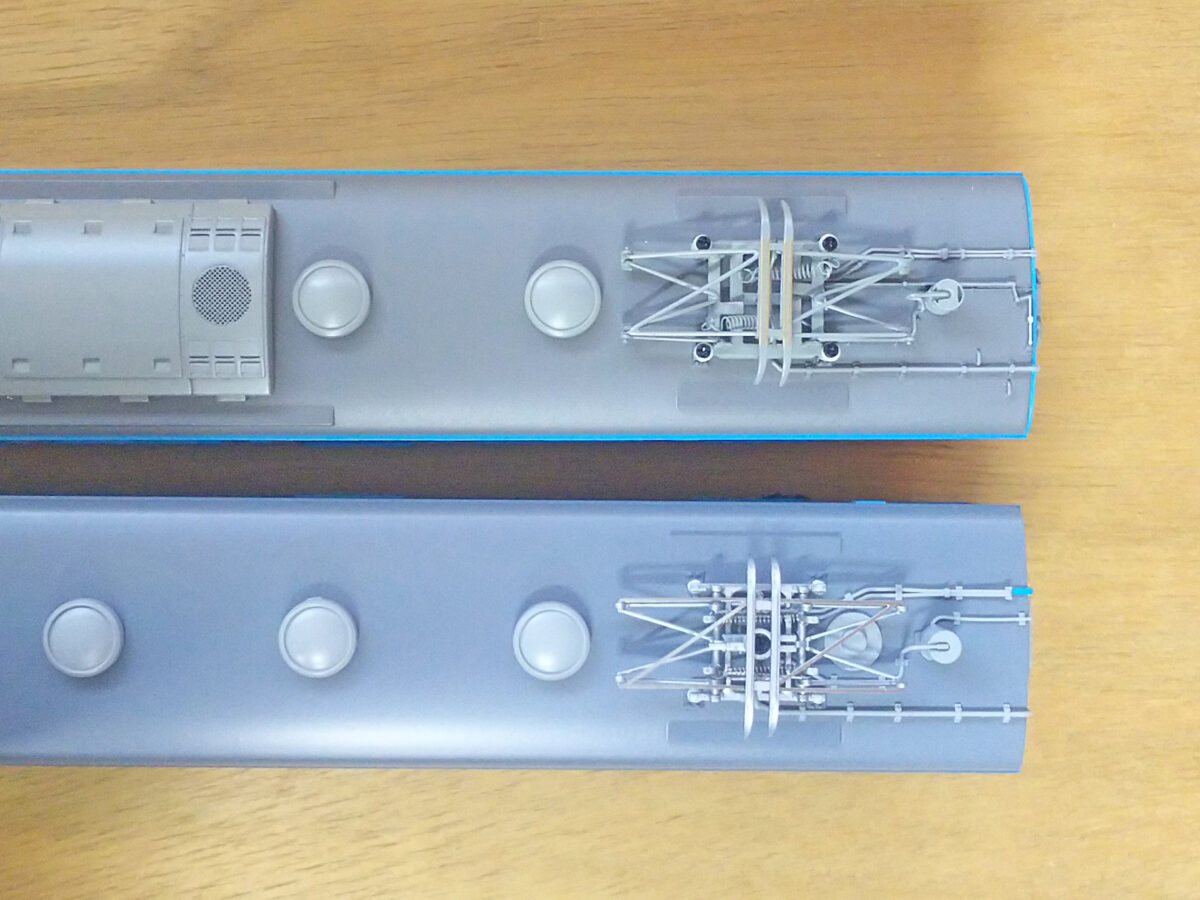 側面はドア窓と戸袋窓のRが両社で異なります。トラムウェイはもう少しRがあっても良いのかな?と思うのですが、どうでしょう?首都圏でよく見られた新製冷房車と非冷房車の混結を再現する場合、ちょっと目立つでしょうね。
