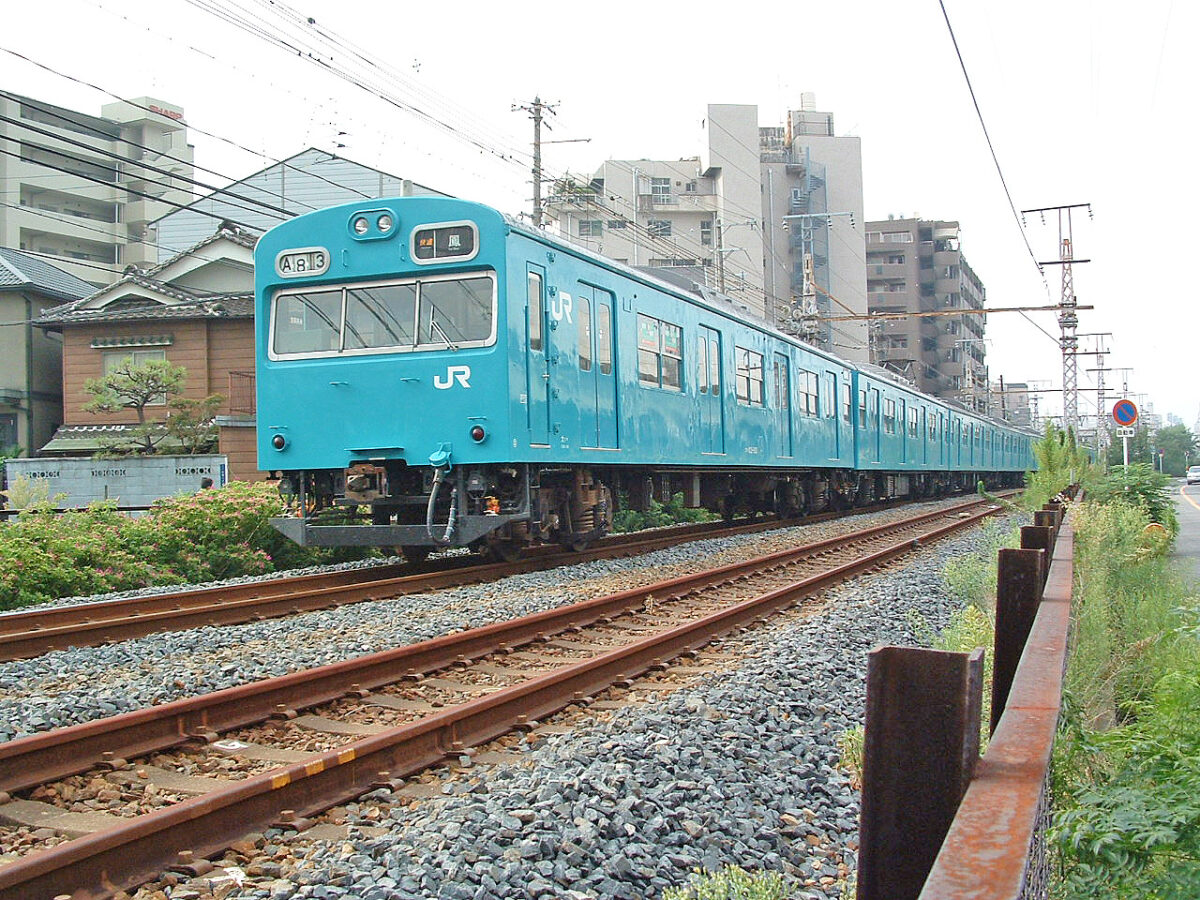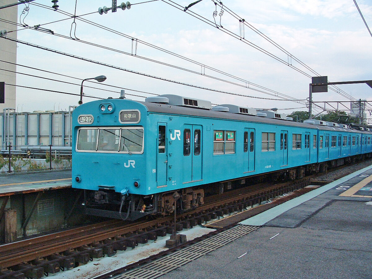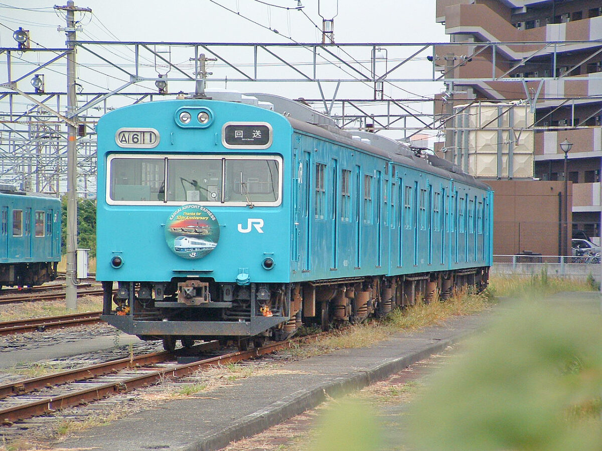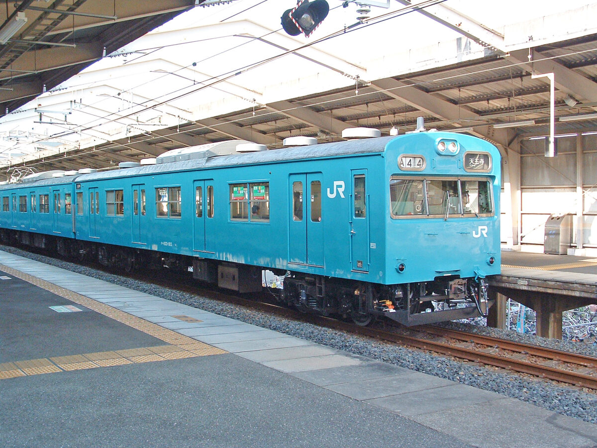 昭和47年3月に京阪神緩行用として新製され昭和59年3月に日根野へ転入、当時は阪和線初の第一次改良車でした。昭和61年に編成がバラされて同車のみ冷房改造を受け、ドアが金枠式に交換されました。平成25年4月にクハ103-182とペアで奈良へ転属しますが翌年3月に奈良から貸出という形で阪和線の運用に復帰、平成27年9月の入場時に奈良所属ですがスカイブルーで「近ヒネ」表記の姿で出場、引き続き阪和線を走り平成30年7月に廃車されました。奈良への移動歴はあるものの、新製時からスカイブルー以外の塗装を経験していない貴重な第一次改良車でした。