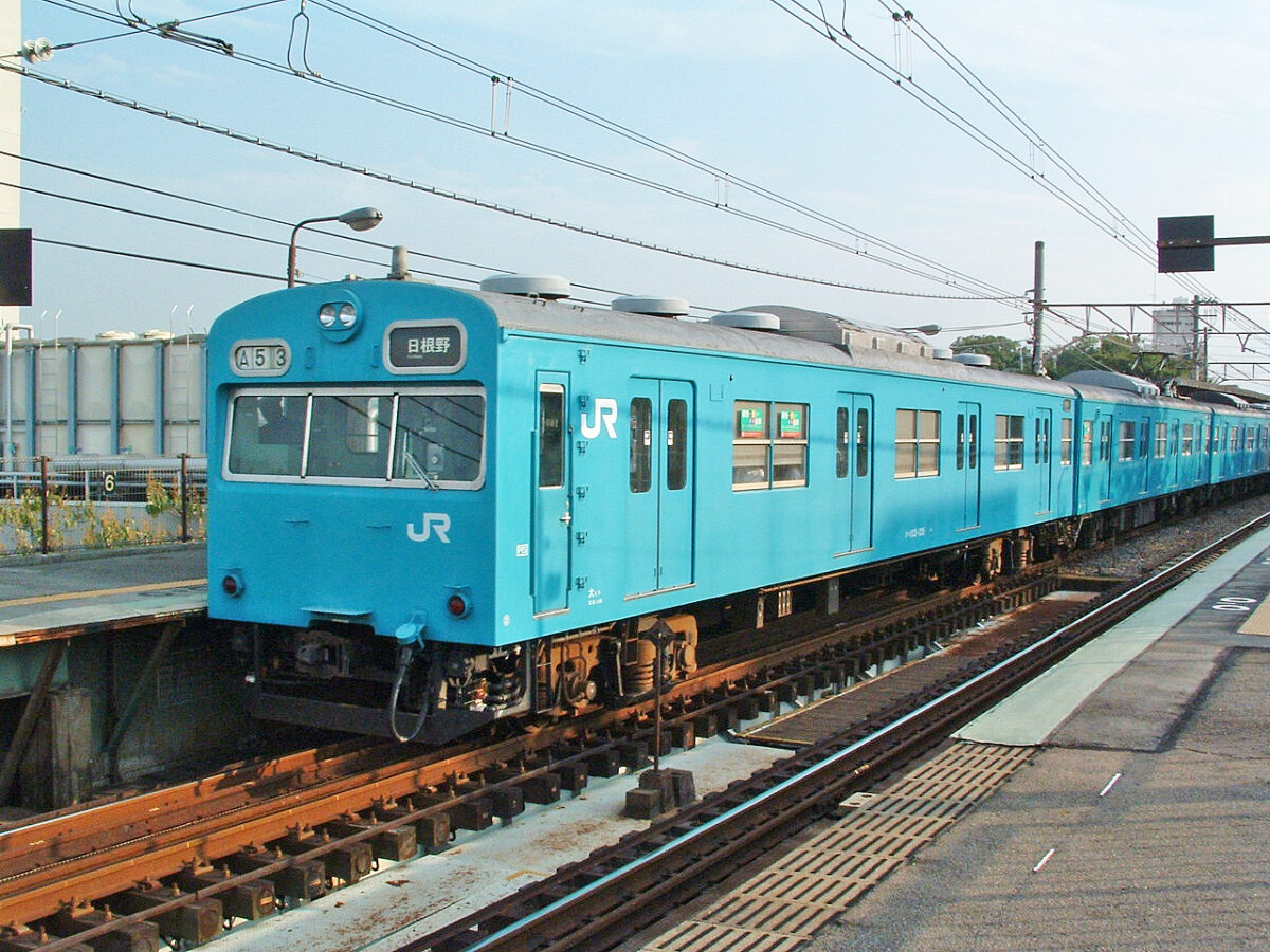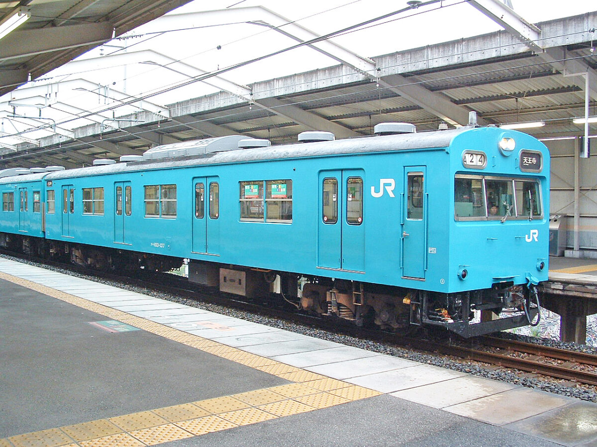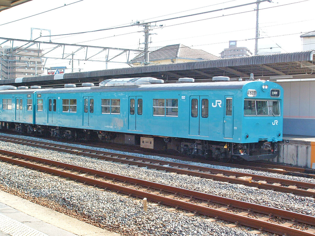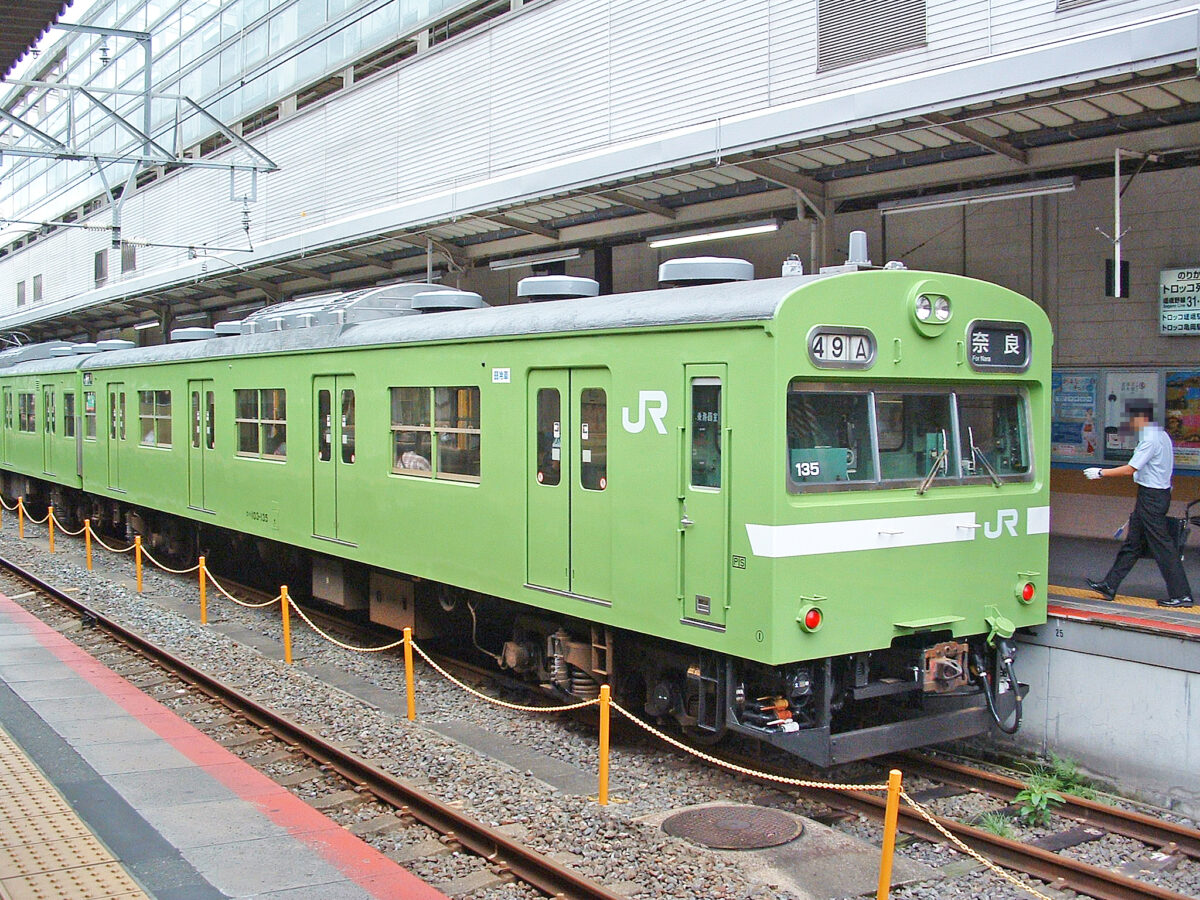 3400両以上製造された103系は新製配置された電車区から移動しなかった車両もあれば、転属を繰り返す車両と色々ありますがクハ103-135は転属が多かった1両で、昭和44年3月に山手線用として池袋区に配置、昭和45年8月に松戸、昭和46年6月に森ノ宮、昭和58年6月に淀川、昭和59年12月に日根野(関西本線用)昭和60年3月に奈良(奈良電車区開設による転属)、昭和61年10月に日根野(今度は阪和線用)、平成6年10月に淀川、平成8年6月に宮原、平成15年10月に日根野、平成25年4月に奈良と転属、塗装もウグイス→オレンジ→ウグイス→ブルー→オレンジ→カナリア→ブルー→ウグイスと基本4色を経験しています。(常磐線も走りましたが塗装変更されないまま森ノ宮へ転属した模様)